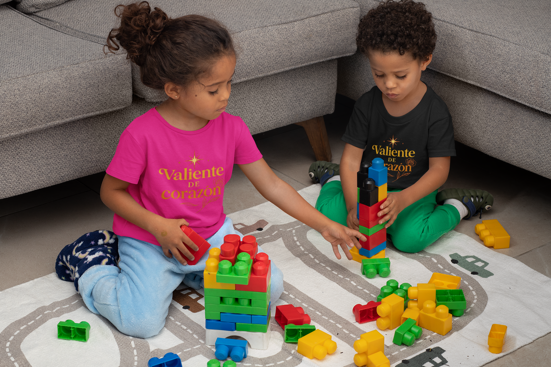 Soft, light, and cheery — this kids tee carries a gentle message in warm, sunlit tones. The front features hand-lettered Spanish text and a small floral and star illustration, giving the shirt a calm, hopeful look that reads like a quiet encouragement. It sits easily in everyday play and special moments alike: at school, family gatherings, or relaxed weekend outings. Breathable 4.5 oz fabric and a regular fit keep movement easy while the ribbed collar and shoulder tape keep the shape after washes. The tear-away label adds comfort for sensitive necks. This tee feels like a small, wearable reminder of bravery and sweetness for little ones who wear their hearts on their sleeve.