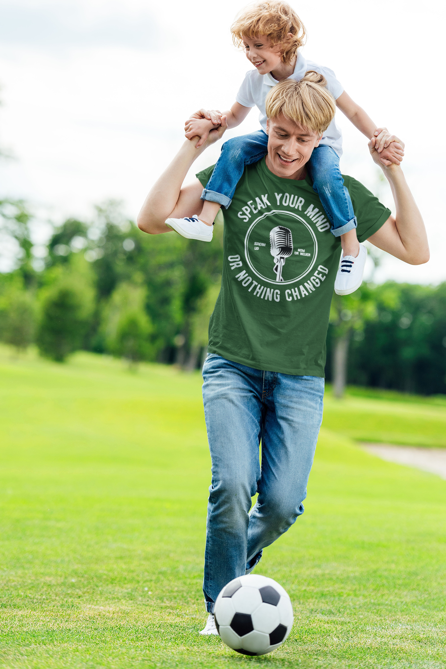Speak Your Mind T-Shirt — Retro Microphone Graphic Tee ("Speak Your Mind or Nothing Changed")